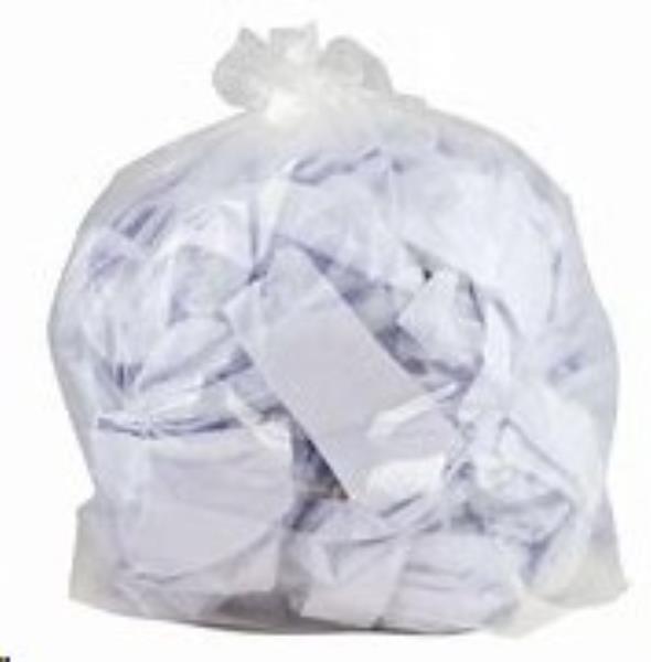 We offer natural/clear compactor sacks to capture and contain waste and recycling. Our highest strength compactor sack is our NA140A1 which is a 140L 20kg CHSA-accredited sack. The compactor sack is ideal for the collection, capture, and containment of general, domestic waste. Clear sacks are particularly popular for recycled waste, as it the waste can be seen easily and any contamination identified and removed. They are also popular for litter picking sacks. Dimensions: Closed width: 508mm (20”) Open width: 864mm (34”) Length: 1168mm (46”) Packed in: 100 pieces (4 folds x 25 pcs)