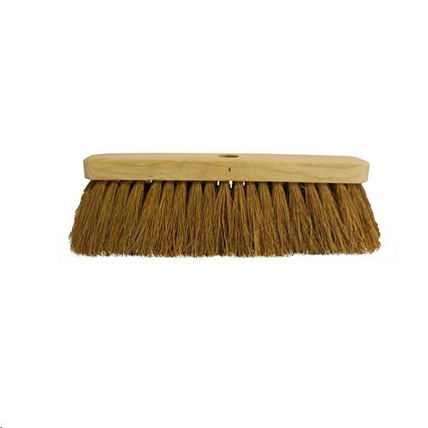 A natural wooden backed sweeping broom with natural coconut bristles which are suitable for sweeping light dust and debris.