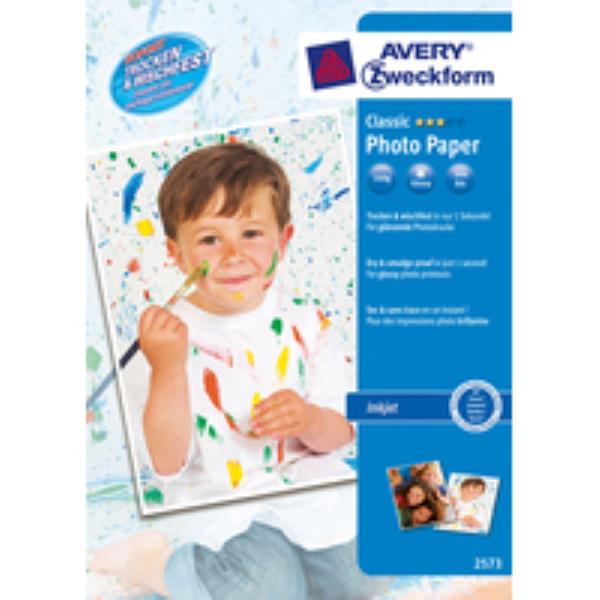 Avery Inkjet Photo Paper A4 160gsm Pack of 60 Sheets 2573-60. Avery Glossy Photo Paper. High quality coated paper ideal for presentations and photo enlargements. The special coating gives excellent colour finish and dries instantly.